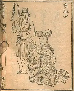 Nach seiner Thronbesteigung als Herzog von Qi machte Huan auf Anraten seines Vertrauten Bao Shuya den herausragenden Politiker Guan Zhong zum Kanzler. Dieser leitete Reformen ein, die Qi zum mächtigsten Staat seiner Zeit machten, wodurch Herzog Huan auch außerhalb von Qi großen Einfluss nehmen konnte. Unter dem Slogan „Respektiert den Kaiser, vertreibt die Barbaren“ (chinesisch 尊王攘夷, Pinyin zunwáng rǎngyí) erlangte er Vorherrschaft über die anderen Staaten Chinas. Er unterstützte Yan, Wei und Xing im Kampf gegen barbarische Stämme. Außerdem forderte er mehrere Staaten dazu auf, Chu anzugreifen, um die Ehre des Königs zu verteidigen.