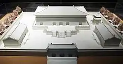 Das Modell von Huangshicheng. Im Gegensatz zu den meisten traditionellen alten chinesischen Gebäuden, die aus Holz bestanden, ist Huangshicheng ein gemauertes Gebäude, das der Brandbekämpfung dient.