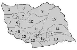 | Gliederung: | 18 Dörfer (村, Cūn) | ||