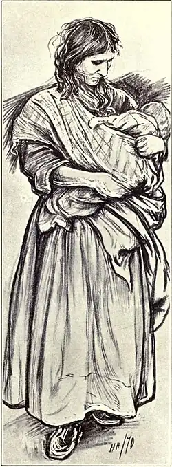 - Gipsy Woman with Child, 1870, Herkomers erste Zeichnung für The Graphic.