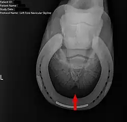Die Strahlfäule ist eine bakterielle Erkrankung des Strahls, hervorgerufen durch mangelnde Huf- und Stallpflege. Beim Auskratzen der Hufe fällt ein fauliger, beißender Geruch auf. Es entstehen Hohlräume, die von einer schwarzen Masse ausgefüllt sind. Lahmheit tritt erst in fortgeschrittenen Fällen auf.