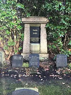 1920 übernahm sein Sohn Paul Krüss (1880–1976) die Unternehmensleitung. Hugo Krüss wurde in der Familiengrabstätte auf dem Friedhof Ohlsdorf beigesetzt. Sie liegt südöstlich von Kapelle 7 im Planquadrat AC 24.