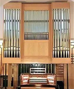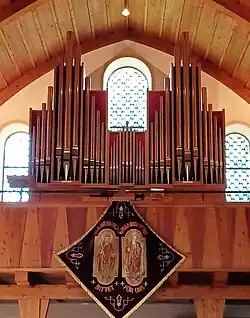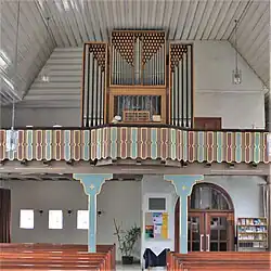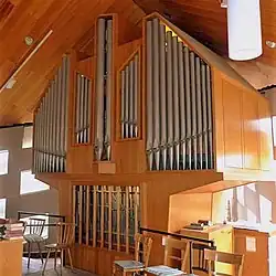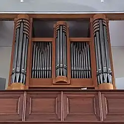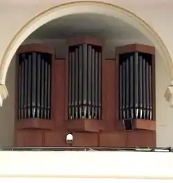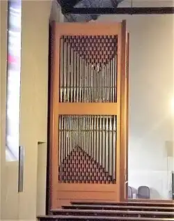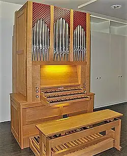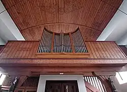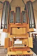 III/P | 6 | Baugleich mit vorangehender Orgel, einziger Unterschied: Subbass 16' im Pedal und Metallpfeifen im Prospekt. |