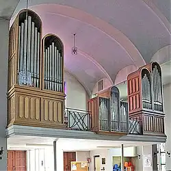III/P | 6 | Baugleich mit nachfolgender Orgel, einziger Unterschied: Rankett 16' im Pedal und Holzpfeifen im Prospekt. |