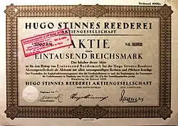 1926 erfolgte die Gründung der Hugo Stinnes Corporation zur Aufnahme amerikanischen Kapitals. In diese wurden alle wesentlichen Vermögenswerte der Familie Stinnes eingebracht. Der Familienanteil am Vermögen der Hugo Stinnes Corporation wurde 1942 von den USA als Feindvermögen beschlagnahmt. Die Hugo Stinnes Corporation wurde versteigert und als Hugo Stinnes Industries Inc. in New York fortgeführt. Aufgrund von amerikanischen Auflagen aus der Hugo Stinnes Industries Inc. ausgeschlossen, machte sich die Familie Stinnes 1948 mit einigen Unternehmen in Deutschland selbstständig. 1950 gründeten Cläre Stinnes, Witwe des Gründers Hugo Stinnes, und die Söhne Hugo und Otto Stinnes eine neue Firma, die Hugo Stinnes Brennstoff-, Eisen- und Schiffahrtsgesellschaft, Zweigniederlassung Duisburg-Ruhrort. Otto Stinnes siedelte bald nach Hamburg um und übernahm dort mit der Firma „Hugo Stinnes“, Zweigniederlassung Hamburg, die Bereederung der Stinnes-Flotte.