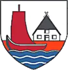 Das „Wappen“ der Gemeinde ist heraldisch nicht beschreibbar und somit kein Wappen im eigentlichen Sinne, sondern den Bildsiegeln zuzuordnen.[3] Es wurde nach dem Zweiten Weltkrieg in Ermangelung von Dienstsiegeln, die frei von nationalsozialistischen und kaiserlichen Symbolen sind, von der Gemeinde gewählt und wird heute noch verwendet (siehe Von der britischen Militärregierung genehmigte Wappen in Schleswig-Holstein).