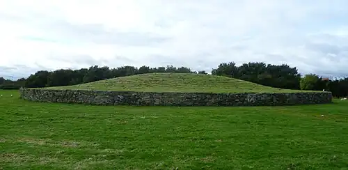 Zur selben Zeit wurden die drei Menhire, die auf einem Kreis mit einem Durchmesser von 100 m zu liegen scheinen, mit einem Pfad verbunden. Falls die drei Steine den Rest eines Kreises bilden, dann liegt der etwa 2500 v. Chr. errichtete Cairn von der Mitte aus deutlich nach Nordwesten versetzt. Eine 1903 aufgestellte Theorie besagt, dass die drei Steine den Rest zweier konzentrischer Steinkreise sind. Es gibt aber keine Belege dafür, auch wenn ein Autor 1852 behauptete, dass der Cairn von zwölf Steinen umgeben war. Die Veröffentlichung des Ordnance Survey vom gleichen Jahr spricht nur von jenen drei Steinen, die man heute noch besichtigen kann.