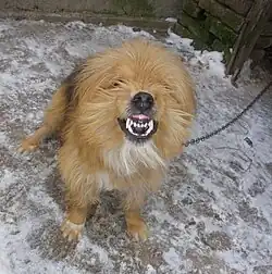 - ↑ Rachel A. Casey, Bethany Loftus, Christine Bolster, Gemma J. Richards, Emily J. Blackwell: Human directed aggression in domestic dogs (Canis familiaris): Occurrence in different contexts and risk factors. In: Applied Animal Behaviour Science. 152, 2014, S. 52–63, doi:10.1016/j.applanim.2013.12.003.