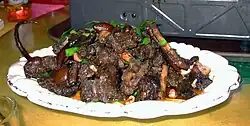 Weiterhin soll der Verzehr von Hundefleisch in Laos, Myanmar, Malaysia[14] sowie in Ghana und im Kongo[14] vorkommen. Dass einige Igorot-Völker auf den Philippinen Hunde für den Verzehr halten, wurde im Zusammenhang der Saint Louis World's Fair 1904 von Tageszeitungen in den Vereinigten Staaten verbreitet.[15] In Thailand gilt Hundefleisch in einigen Regionen, vor allem in Sakon Nakhon (Isan), als Delikatesse, obwohl die meisten Thais das Schlachten von Hunden ablehnen. In Osttimor gilt Hundefleisch als Delikatesse.[16] Allerdings soll sich diese Sitte erst in den 1980er Jahren von Nordsulawesi (Indonesien) kommend, wo Hundefleisch traditionell vom Volk der Minahasa gegessen wird, eingebürgert haben, als in der Landeshauptstadt Dili das erste Hundefleisch-Restaurant eröffnete. Im Südwesten Nigerias findet jedes Jahr ein großes Fest statt, bei dem Hunderte Hunde geköpft werden. Ihr Blut wird auf eine Götterstatue gesprenkelt, das Fleisch danach gegrillt und gegessen.[17] In Kambodscha wurde im Oktober 2019 der größte Hundefleisch-Anbieter der Provinz Takeo geschlossen.[18]