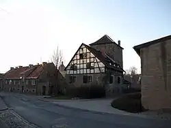 Vom Ursprung her ist Hundisburg kein Bauerndorf, sondern eine Burgmannensiedlung. Zunächst siedelten sich seit dem 13. Jahrhundert unterhalb der Hunoldesburg die mit dem Schutz der Burg betrauten Ritter an und errichteten auf ihren Höfen steinerne Türme. Ursprünglich gab es sechs derartige Turmhöfe. Bis heute hat sich jedoch nur ein um 1250 erbauter Wohnturm erhalten. Dieser Turm diente mit seinen dicken Mauern, dem Zinnenkranz und Sperrriegeln der Verteidigung. Mit Schmuckfenster, Kamin und Aborterker war er zugleich eine repräsentative Wohnung. Bis zum späten Mittelalter wuchs Hundisburg zu einem beachtlichen Flecken mit Ortsbefestigung und drei Toren, wobei das Magdeburger Tor heute noch vorhanden ist.