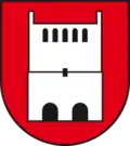 Blasonierung: „In Rot eine silberne Kirchturmruine mit schwarzen Öffnungen.“