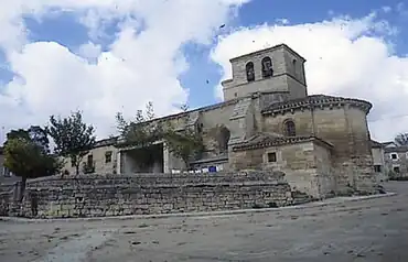 - Die im frühen 13. Jahrhundert entstandene Kirche ist dem Apostel Jakobus d. Ä., dem Schutzpatron der Reconquista Spaniens, geweiht. Von der ursprünglichen Kirche ist lediglich die Apsis original erhalten; Langhaus und Glockenturm (campanario) sind spätere Hinzufügungen. Blickfang im einschiffigen Inneren der Kirche ist das spätbarocke Altarretabel (retablo) im Stil des Churriguerismus, in dessen Zentrum eine Reiterfigur Santiagos als Maurentöter (matamoros) zu sehen ist.