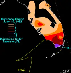 - ↑ David Roth: Rainfall summary for Hurricane Alberto (1982). Hydrometeorological Prediction Center, 2006, archiviert vom am 8. Oktober 2006; abgerufen am 4. April 2008. Info: Der Archivlink wurde automatisch eingesetzt und noch nicht geprüft. Bitte prüfe Original- und Archivlink gemäß Anleitung und entferne dann diesen Hinweis.