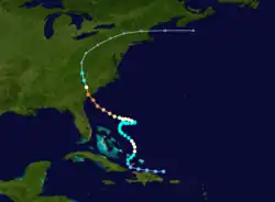 - ↑ a b National Hurricane Center: Atlantic hurricane best track (Hurdat). Hurricane Research Division. Atlantic Oceanographic and Meteorological Laboratory. National Oceanic and Atmospheric Administrations Office of Oceanic & Atmospheric Research, April 2022, abgerufen am 22. Mai 2022 (englisch).