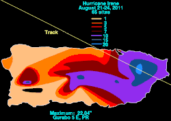- ↑ Yanira H. Cabiya: Se esperan unas 4 pulgadas más de lluvia en todo Puerto Rico. In: El Nuevo Día. Grupo Ferré-Rangel, 22. August 2011, abgerufen am 23. August 2011 (spanisch).