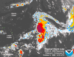 - ↑ Avila: Tropical Storm Lisa Discussion Number 13. National Hurricane Center, 1998, abgerufen am 8. November 2008 (englisch).