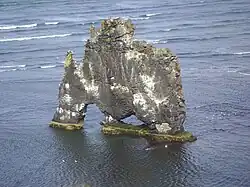 Der Hvítserkur (isl. „weißer Kittel“, da er durch Vogelexkremente weiß gefärbt ist) ist ein Basaltfelsen an der Ostküste der Halbinsel Vatnsnes im Nordwesten von Island.