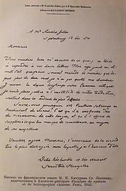 - ↑ Korrespondierende Mitglieder der Russischen Akademie der Wissenschaften seit 1724: Бичурин, Никита Яковлевич. Russische Akademie der Wissenschaften, abgerufen am 15. Juli 2021 (russisch).