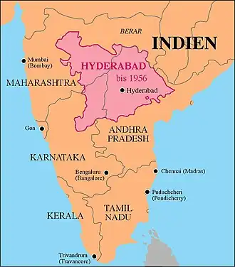 | Endpunkt | 18. September 1948 (Besetzung durch Indien) 25. Januar 1950 (Indischer Bundesstaat) | ||||