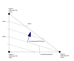 Das hydrologische Dreieck ist ein Verfahren zur Erstellung eines Grundwassergleichenplans. Ebenso kann mit diesem Verfahren schnell die Grundwasserfließrichtung ermittelt werden.
