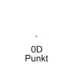 - Wenn ein Punkt um die Distanz geradlinig verschoben wird, entsteht eine eindimensionale Strecke, mathematisch ein eindimensionaler Hyperwürfel.