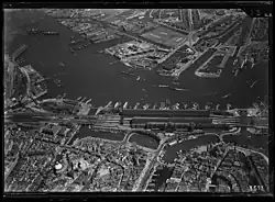 Auf Höhe der früheren Amstelmündung wurden drei Inseln ins IJ gebaut. Als Material konnte dazu der Sand aus den Dünen bei IJmuiden verwandt werden, der beim Bau des Nordseekanals angefallen war. Auf diesen Inseln entstand der Amsterdamer Hauptbahnhof (Amsterdam Centraal); dadurch wurde die Innenstadt Amsterdams vom IJ abgetrennt und der Hafenbereich verschoben.