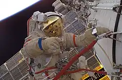- ↑ RIA Novosti: Space station crew makes spacewalk, 19. August 2005 (englisch)