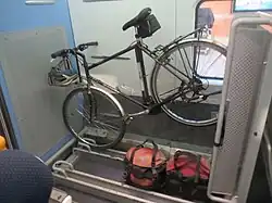 - Auf den übrigen Intercity-Strecken ist das Angebot auf zwei (manchmal auch vier) Fahrradabstellplätze beschränkt. Diese sollten rechtzeitig gebucht werden. Zusätzlich sind diese wenigen Plätze kürzer als ein Fahrrad. Dadurch ist ein problemloses Abstellen nicht möglich. Ob noch Plätze für Räder vorhanden sind, erkennt man beim Buchen durch die Meldung: “No Online Tickets. Why?”, aber nur, falls man bei der Eingabe „Bike Space“ ausgewählt hat. Dass es dabei um die Fahrradplätze geht, sieht man, wenn man die Suche ohne „Bike Space“ wiederholt und dann Fahrkarten angezeigt bekommt.[7]