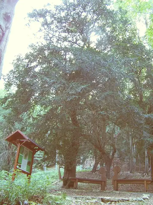 ![]() Die Staudt-Eibe am Rastplatz zählt zu den ältesten Exemplaren im Naturschutzgebiet Ibengarten. | ||