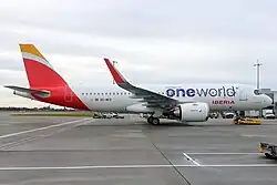 Iberia Líneas Aéreas de España S.A. Operadora,[3] meist kurz Iberia, ist die größte spanische Fluggesellschaft mit Sitz in Madrid und Drehkreuz auf dem Flughafen Madrid-Barajas. Sie ist Teil des Luftfahrtkonzerns International Airlines Group (IAG) und Mitglied der Oneworld Alliance.