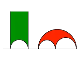 Im Halbraummodell wird ein ideales Dreieck von drei senkrecht aufeinander und auf der reellen Gerade stehenden Halbkreisen oder Geraden berandet.