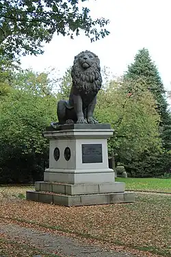 - ↑ „Isted“ auf dem Schild am Sockel des Löwen