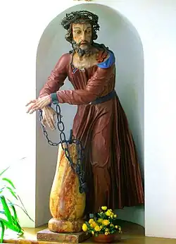 - ↑ Ein weißes, bis zu den Knien reichendes Chorhemd, aus Unkenntnis nachträglich oft farbig gefasst.