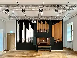 II/P | 17 | Saalorgel mit Koppelmanual. 2022 Generalsanierung, Reorganisation und Neuintonation durch Orgelbau Mühleisen in Kooperation mit Orgelbau Bäumler/Weiden. → Orgel | |
