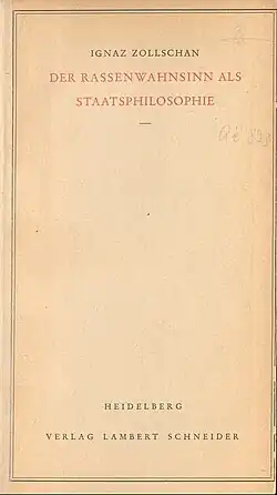 - Zollschan, Ignaz. In: Werner Röder, Herbert A. Strauss (Hrsg.): International Biographical Dictionary of Central European Emigrés 1933–1945. Band 2: The Arts, Sciences, and Literature. Teilband 2: L – Z. Saur, München 1983, ISBN 3-598-10089-2, S. 1282.