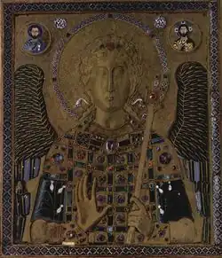 Aus literarischen Quellen sind Ikonen seit dem 4. Jahrhundert nachweisbar.[23] Die ältesten erhaltenen Ikonen stammen aus dem 6. Jahrhundert; allerdings sind aus der Zeit vor den Zerstörungen des byzantinischen Bilderstreites (9. Jahrhundert) nur noch sehr wenige Exemplare, meist aus abgelegenen Gegenden, vorhanden.