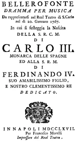 ![]() Titelblatt des Librettos, Neapel 1767 | |