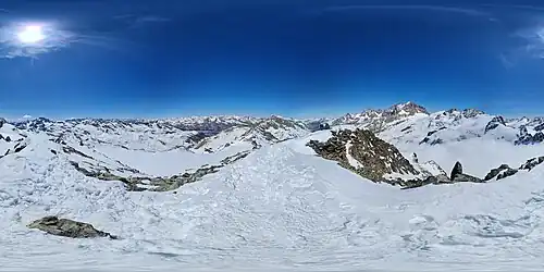 - ↑ Berechnetes 360°-Panorama (U. Deuschle; Hinweise) vom Il Chapütschin
