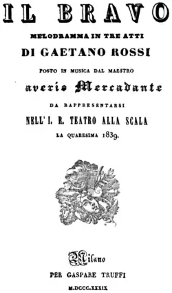 ![]() Titelblatt des Librettos, Mailand 1839 | |