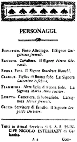 ![]() Titelblatt des Librettos, Esterházy 1777 | |