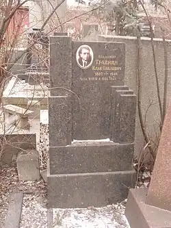 - ↑ Die auf dem Grabstein mit dem Kürzel "ВКП(б)" (WKP(B)) erwähnte Kommunistische Allunionspartei (Bolschewiki) (russ. Всесоюзная коммунистическая партия (большевиков) / Wsesojusnaja Kommunistitscheskaja Partija (Bolschewikow)) war ein Vorgänger (1925–1952) der Kommunistischen Partei der Sowjetunion.