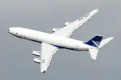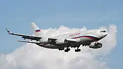 Die Iljuschin Il-96 (russisch Ильюшин Ил-96) ist ein vierstrahliges Großraumflugzeug des russischen Flugzeugherstellers Iljuschin. Der Erstflug des als Tiefdecker ausgelegten Langstreckenflugzeugs fand am 28. September 1988 in der Version Il-96-300 statt. Die Flugzeuge werden in Woronesch hergestellt. Im Jahr 2019 waren neue Flugzeuge des Typs IL-96-300 bestellt[3] und der Typ IL-96-400M im Bau. Dessen Erstflug erfolgte im November 2023.[4] Mit Ausnahme der staatlichen kubanischen Fluggesellschaft Cubana werden alle Flugzeuge des Typs vom russischen Staat betrieben, auch der russische Präsident Putin nutzt weiterhin Maschinen des Typs Iljuschin Il-96.[5]