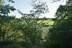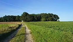 Der Ilkenberg liegt beinah exakt im Mittelpunkt der umliegenden Dörfer. Eine Vielzahl an Feldwegen läuft auf die Anhöhe zu.[2] Der höchste Bereich der Anhöhe wird von einem kleinen Waldstück bedeckt, das ringsherum von Äckern umgeben ist.