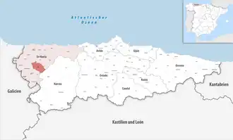 Die Gemeinde ist begrenzt von Boal im Norden, Pesoz und Santa Eulalia de Oscos im Süden, von Villayón, Allande und Boal im Westen und im Osten von Villanueva de Oscos und Castropol.