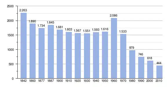 Nach den Zeiten der Landflucht ist das Altersgefüge relativ hoch, die Abwanderung der Jugend hat dazu geführt, dass beinahe ausschließlich die Landwirtschaft als Wirtschaftsfaktor geblieben ist, jedoch ist auch hier, bedingt durch die Überalterung ein Bauernsterben zu erkennen. Handel und Produktion sind so gut wie nicht vorhanden.