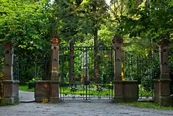 Der linke Weg führt vorbei an efeubewachsenen Gräbern zu ein paar Stufen, die hinaufführen zu einer Art Gräbergalerie. Die Gräber unterscheiden sich in Größe und Ausstattung. Die reichen Patienten der ersten Klasse erhielten prachtvolle Gräber mit Skulpturen, liebevollen Inschriften und Einfriedungen kunstvoller Schmiedewerke. An die Mittellosen, die hier bestattet wurden, erinnern einfache Holzkreuze mit deren Namen, und selbst diese verblassten mit der Zeit bis zur Unkenntlichkeit. Es liegen Namenlose neben Adligen, Ärzte neben einem Hofschauspieler oder einem Hofmusikus und Pfleger neben einem Marschall oder einem russischen Offizier.