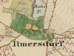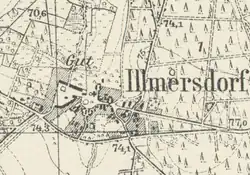 Rauer nennt für 1857 als Besitzer von Illmersdorf Julius Louis Mayer (Israelit).[14] 1867 weist das Topographisch-statistische Handbuch des Regierungs-Bezirks Frankfurt a. O. den Kaufmann Meyer Ball zu Calau als Besitzer aus.[15] Meyer Ball wohnte damals im sogenannten Judenhaus in Calau und war Wollhändler.[16][17][18] 1879 sind die Meyer Ball’schen Erben die Eigentümer von Illmersdorf. Die Ziegelei ist der einzige größere Wirtschaftsbetrieb zur Land- und Forstwirtschaft hinzu. Das Gut hatte eine Größe von 649,12 ha; davon entfielen 147,07 ha auf Ackerland, 52,76 ha auf Wiesen, 42,24 ha auf Hutung und 395,10 ha auf Forst.[19] 1885 war das Gut in den Besitz von Heinrich von Witzleben gekommen. Das Rittergut umfasste 649 ha; mit 120 ha Ackerland, 53 ha Wiesen und 464 ha Forst. Es war an einen gewissen Lehmann verpachtet.[20] 1914 gehörte das Gut immer noch dem 1886 in den erblichen Grafenstand erhobenen Heinrich von Witzleben in Altdöbern.[21] Pächter des Gutes war Gustav Weger. Das Handbuch des Grundbesitzes von 1910 nennt eine Gesamtgröße des Gutes von 668,61 ha, davon 120 ha Ackerland, 53 ha Wiesen, 464 ha Forst und interessanterweise 12 ha Wasserfläche. Vermutlich war der Rohr-Teich oder der Lugk-Teich noch nicht (wieder) trocken gelegt worden. 1921 ist Helmut Roebbelen der neue Besitzer des Gutes, das aber nur noch 135 ha umfasst. 1923 gehörte es Hans Meyer in Berlin, der es an Otto Rohrbeck verpachtet hatte. Das Gut umfasste nur noch 75 ha Ackerland und 35 ha Wiesen. Davon abgetrennt worden war ein kleineres Gut von 21 ha, das Wilhelm Schonnop gepachtet oder gekauft hatte.