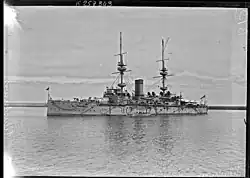 Die Sekundärbewaffnung bestand aus zwölf 152-mm-Geschützen. Sie waren in Kasematten in zwei Geschützdecks mittschiffs untergebracht. Die Geschütze waren auf Lafetten mit einem Seitenrichtbereich von +30° bis +150° montiert. Die Kanonen selbst wogen 2,2 t und hatten bei einer maximalen Elevation von 20° und einer Mündungsgeschwindigkeit von 544 m/s eine Reichweite von 9.050 m. Sie verschossen 20,4 kg schwere Granaten mit einer Kadenz von etwa fünf bis sechs Schuss pro Minute.[10] Außerdem trug sie sechzehn 76-mm- und zwölf 47-mm-Schnellfeuergeschütze zur Verteidigung gegen Torpedoboote. Darüber hinaus war sie mit fünf 457-mm-Torpedorohren ausgestattet, von denen vier auf der Breitseite im Schiffsrumpf eingelassen waren und das fünfte sich in einer auf dem Deck montierten Abschussvorrichtung am Heck befand.[6][8]