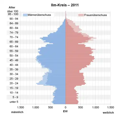 - ↑ Datenbank Zensus 2011, Ilm-Kreis, Alter + Geschlecht