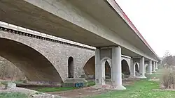 Es handelt sich beim Teilbauwerk 2 um eine steinerne Bogenbrücke aus dem Jahre 1939 und beim Teilbauwerk 1 um eine Balkenbrücke von 1999 aus Spannbeton.[1] Die alte Brücke war Teil der Strecke 80 der Reichsautobahn.